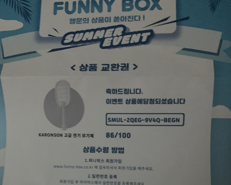 퍼니박스 당첨 후기 게시판입니다. 당첨후기 게시판은 퍼니박스를 이용한 사진을 1장이상 첨부 부탁드립니다. 번호판..